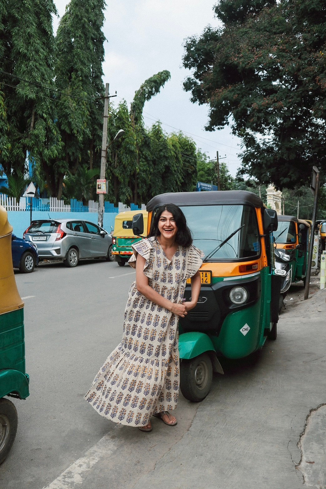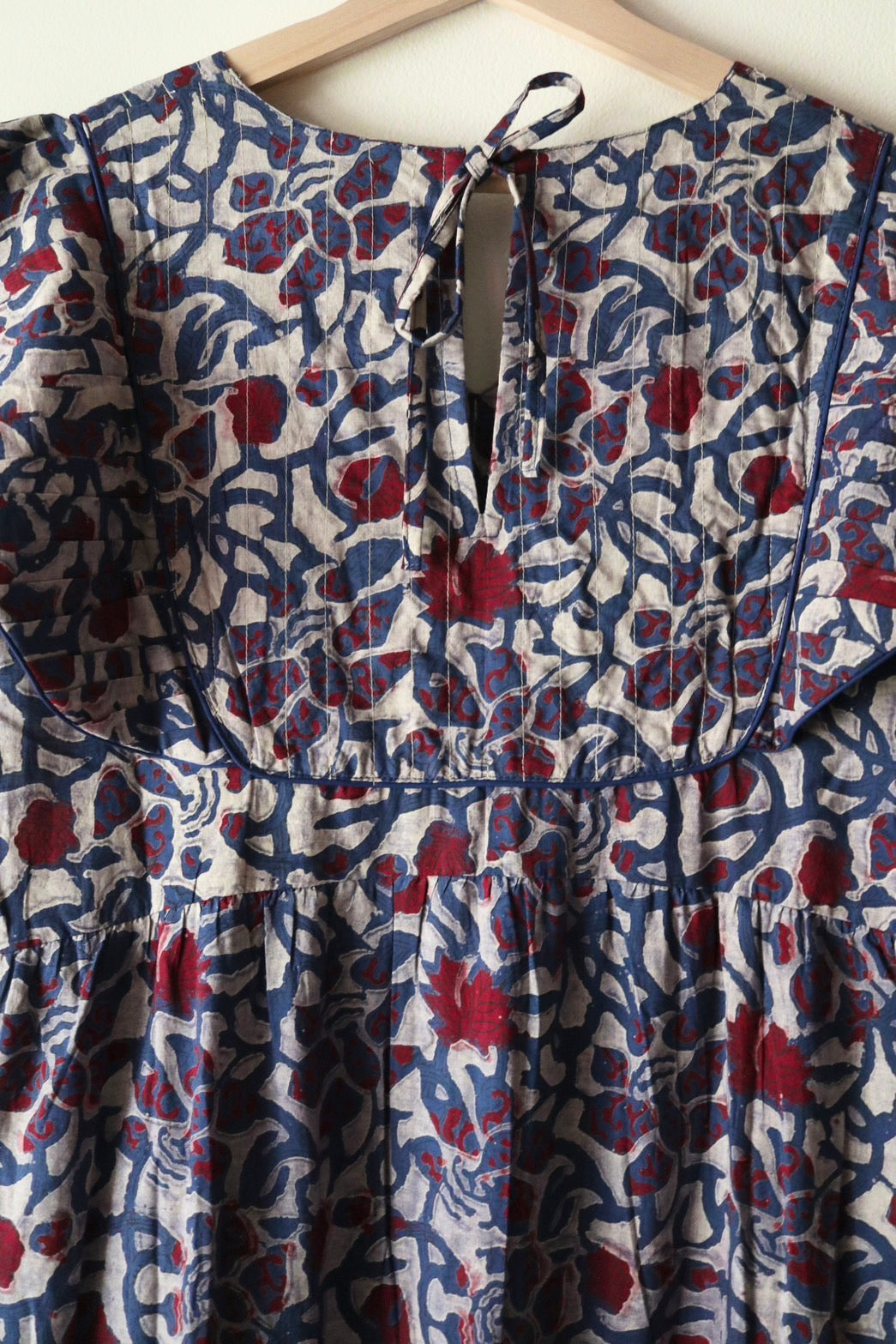 やわらかなインド綿に、手仕事の温もりを感じるアジュラックプリント。とても軽くて風通しがよく、日本の蒸し暑い夏にぴったりのワンピースです。